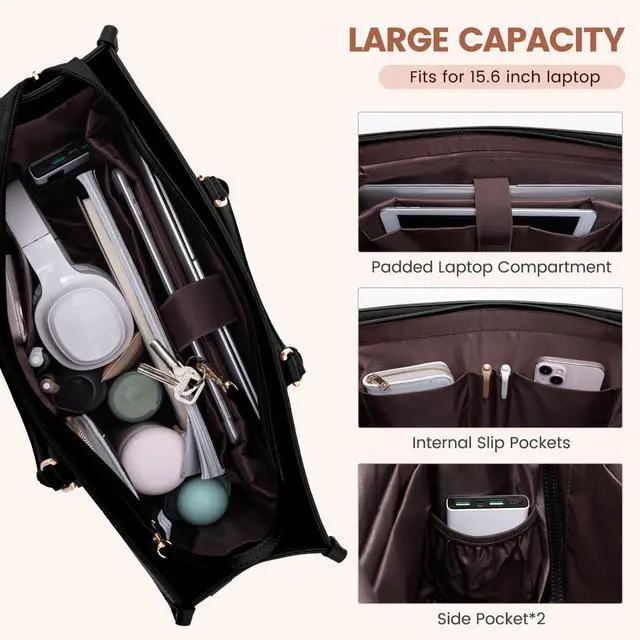 Women: The Computer Handbag Shoulder Bag interior is thoughtfully designed with multiple compartments. The laptop pursue built-in padded laptop compartment fits up to a 15.6" laptop, featuring a thick protective foam pad and a secure velcro strap to ensure optimal protection for your device. ^^ Excellent Work Tote Bag for