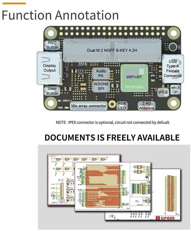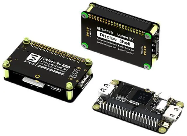 Onboard a user buttonSystem: Tina Linux(Based on OpenWRT 14.07 ), Debian; YoC (RTOS ) -Package Content-1x Sipeed RV Dock LCD adapter board1x 4.3 inch LCD-Technical Support-Please click "WayPonDEV" and ask a question or monica#smartfire.