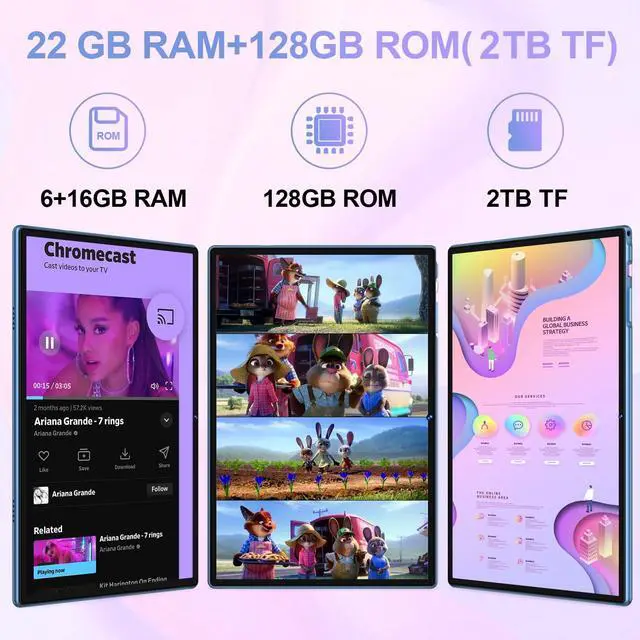 Ample Storage & GMS Certification: With 22GB RAM 128GB ROM, support for up to 2TB of expandable storage, this tablet offers plenty of space for apps and media. GMS certification ensures smooth access to Google services ^^