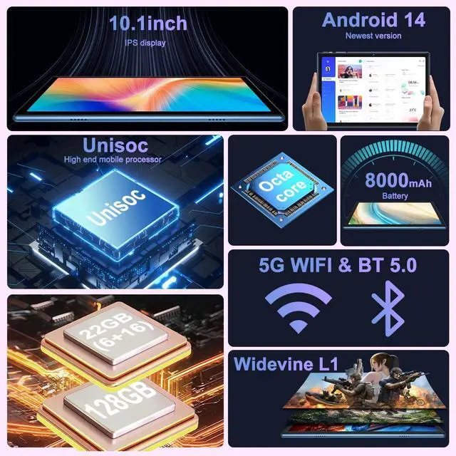 Powerful Performance: Running on the latest Android 14, the tablet is powered by a octa-core processor clocked at 2.0GH z. Experience fast, efficient multitasking and great privacy protection for both work and entertainment ^^