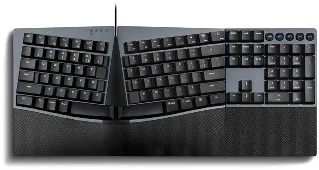 Ergonomic Design: Full-size keyboard with a split-key design and curved frame promote a better posture by helping to position the wrist and arms in the most natural typing posture ^^
