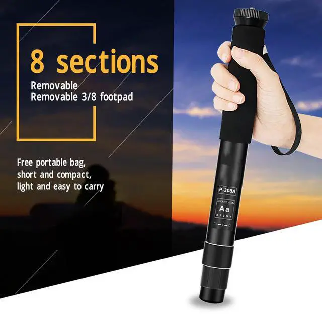 ^^ Height Adjustable: Camera monopod has 8 sections, the shortest can be stored for 28cm /11in, the longest stretch up to 160cm / 63in. With portable bag, can be hand carried or shoulder, lightweight and easy to carry.