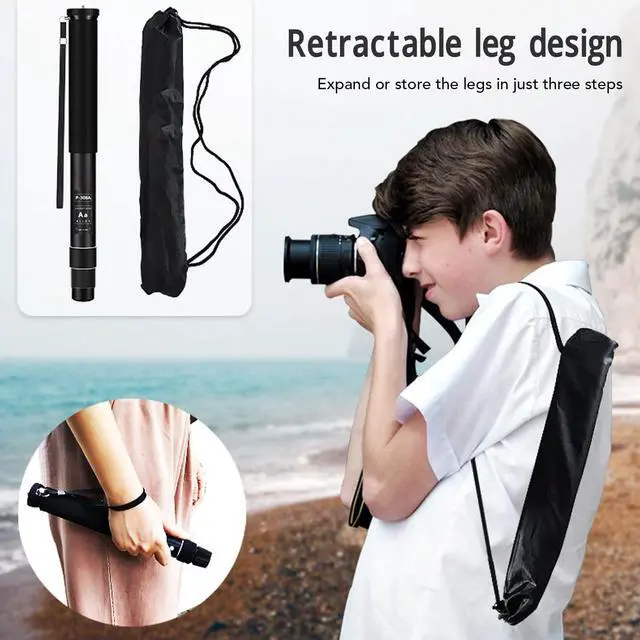 ^^ Aluminum Alloy: Retractable monopod is made of premium aluminum alloy, strong and. retractable leg design, only three steps to unfold or store the leg.