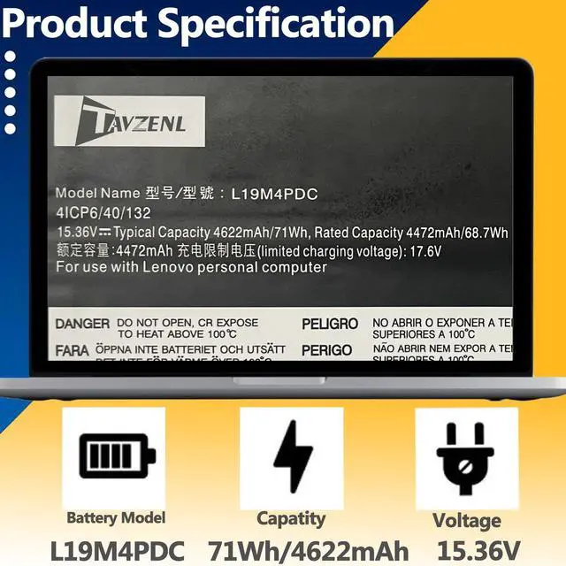 Battery Color: Black 100% brand New from Manufacturer ^^ Compatible Modelfor Lenovo Yoga 7i 2022/2021/2020 Series, Ideapad Yoga 7-15ITL5 7-15ITL5-82BJ 7-15ITL5-82BJ0030GE 7-15ITL5-82BJ0031GE 7-15ITL5-82BJ006NGE Series, Ideapad Yoga 7-14ARB7 Serie, Ideapad Yoga 7-14ITL5 7-14ITL5-82BH 7-14ITL5-82BH004XGE 7-14ITL5-82BH004WGE Series, Ideapad Yoga 7-14ACN6-82N7 Series. ^^ Compatible C/NL19M4PDC, L19L4PDC, L19C4PDC, 5B10Z26479, SB10Z26486, SB10Z26481, 5B10Z2648, 5B10Z26482, SB10Z26483, 4ICP6/40/132 ^^ HIGH-PERFORMANCE, LONGER LASTINGWe have passed a series tests of short circuit, overheating, and overload protection before shipments. ALL of our battery are CE, FCC, RoHS Certified. Premium battery chip, makes a faster-charging and longer-lasting performance to meeds your daily working, learning and playing needs ^^ Reassured After-sales We promise 30-Day Refund & 1-Year Warranty. For any battery questions, just feel free to contact us for help via the order or click on"TAVZENL", then you can see "Ask a question" on the page. We will glad to help you solve any battery problems within 24 hours