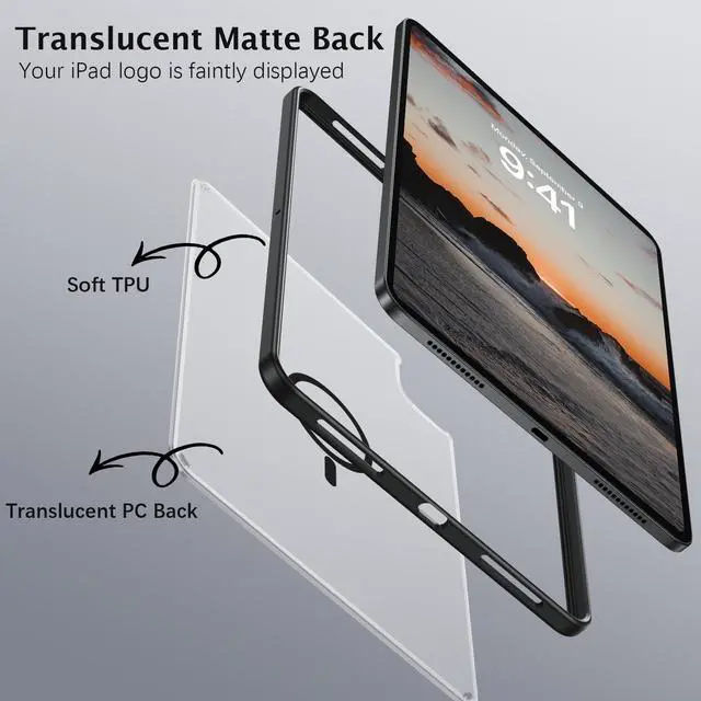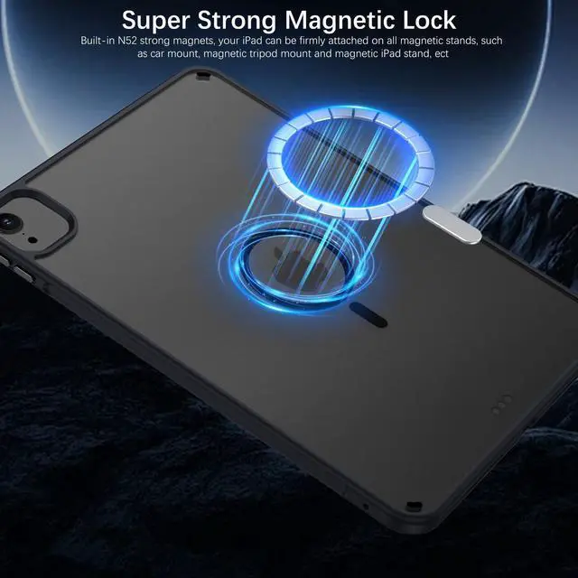 Pro 11: A2759, A2435, A2761, A2762, A2377, A2459, A2301, A2460, A2228, A2231, A2068, A2230, A1980, A2013, A1934, A1979 ). Please check back bottom of your iPad to find the model number "Axxxx". (Not for iPad Pro 11 (M4) 2024!! ) ^^ The Use of Multiple ScenariosThis magnetic case for iPad Air 11 inch(M3/M2)/iPad Air 5th Gen/iPad Air 4th Gen is equipped with industrial-grade N52 high-strength magnets, allowing for multiple scenarios. You can attach your iPad on all magnetic stands firmly, such as such as car mount, magnetic tripod mount and magnetic iPad stand, ect. (Note!!! Not for Magsafe charging!! ) ^^ Heat Dissipation Holes3 heat dissipation holes can help your iPad dissipate heat in a timely manner and extend the lifespan of the your iPad Air 11 inch(M3/M2)/iPad Air 5th Gen/iPad Air 4th Gen. ^^ Protection for Camera & ScreenRaised lip on both front and back provide a perfect protection to screen and camera against scratch when placed down without making your iPad Air 11 inch(M3 2025/M2 2024) bulky. ^^ Strong Protection & Premium MaterialsMade of matte acrylic back and a flexible TPU frame, provide a perfect protection against fingerprints, scratches and drop while maintaining its original beauty.