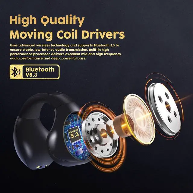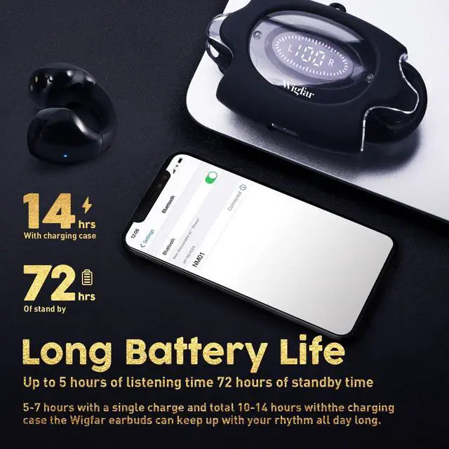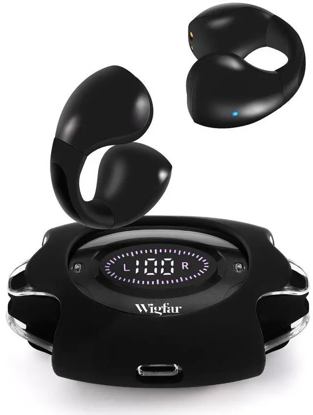 Open Ear DesignWigfar Open Ear Headphones design for both comfort and safety, offering a breathable and open fit, Wigfar bluetooth wireless headphones are versatile and cater to workout, driving, meeting ^^ Bluetooth 5.3 Technology With Bluetooth 5.3 technology, Wigfar open ear bluetooth headphones has good compatibility, stable connection and fast transmission speed. Low power consumption can last more than 24 hours. IPX4 waterproof ^^ Ear Clip Headphones Wigfar Unique clip-ear design with U-shaped curved arm, does not affect the hair style and interfere with wearing glasses and hats. Small and light in size, long time wearing also comfort.