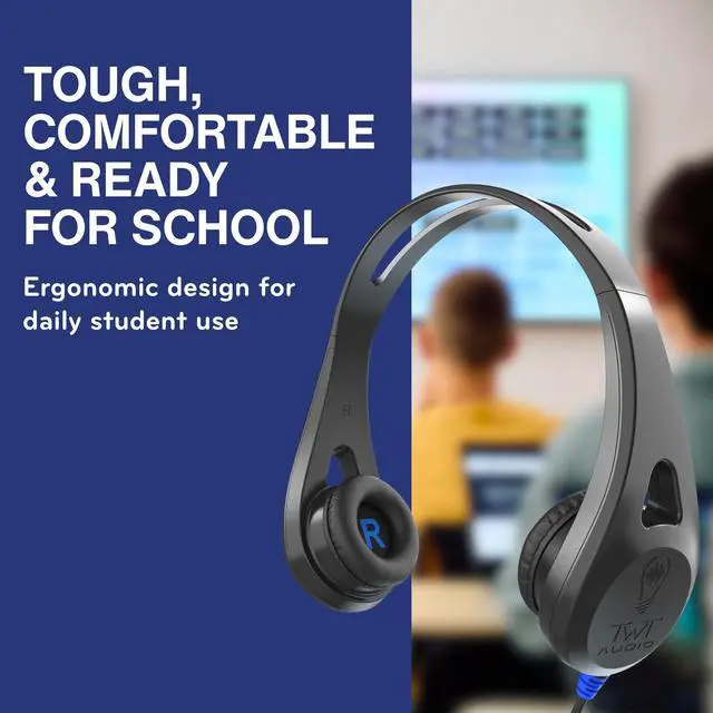TO LAST: The TWT Audio Ergo TW100 features a flexible, ergonomic frame with angled earcups for daily student use. Designed to withstand the classroom while delivering premium sound clarity. ^^ LIGHTWEIGHT & READY FOR LONG SESSIONS: These on-ear headphones offer all-day comfort with a light frame and cushioned fit. Perfect for focused learning, testing, or quiet reading time. ^^ UNIVERSAL 3.5MM