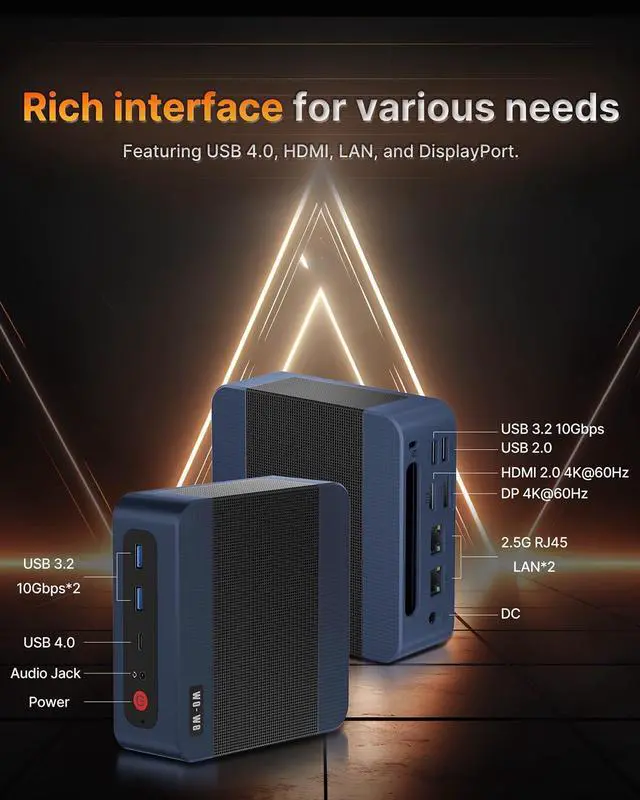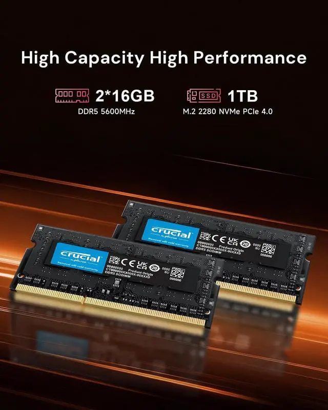 ^^ 32GB DDR5 RAM & 1TB PCIe 4.0 SSDP8 mini pc 32gb ram is pre-installed with 32GB of high-speed DDR5 RAM (2x16GB) and a massive 1TB PCIe 4.0 SSD right out of the box. This means instant load times for your large projects and seamless switching between demanding apps. This mini pc ddr5 can upgrade down the line with two available DDR5 slots and dual M. 2 slots, supporting up to 64GB of RAM and 4TB of total storage. It's built to handle everything from running multiple virtual machines and editing 8K video to loading the latest game assets in a flash.