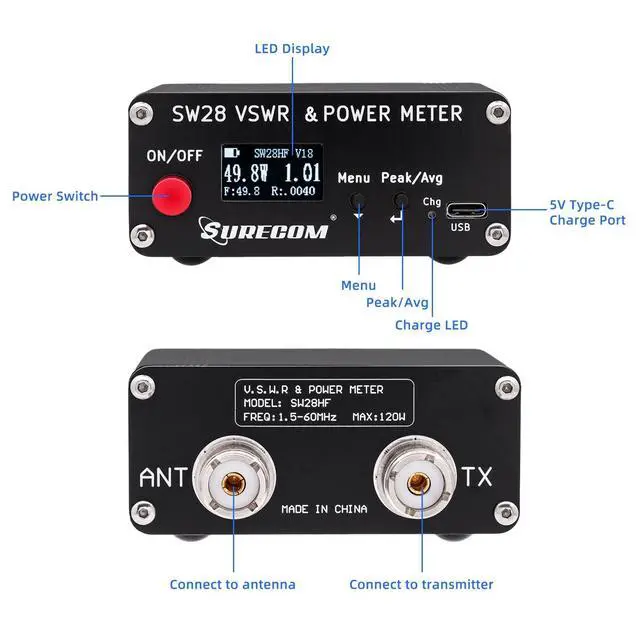According to the fitting algorithm of detector diode characteristics, the accuracy is better than 5%. ^^ 5 kinds of interface display methods, choose according to your own preferences, one-click switching. ^^ Easy switch between normal mode and peak hold mode. Illuminated meter with large display for easy reading. ^^ High-speed average detection method, real-time efficiency display. Buzzer alarm when standing wave is greater than 2.0. Built-in lithium battery can be used for more than 50 hours at a time. ^^ Multi-function buttons make it more fun to use, reserve space for adding functions in the future, and provide an additional interactive method.