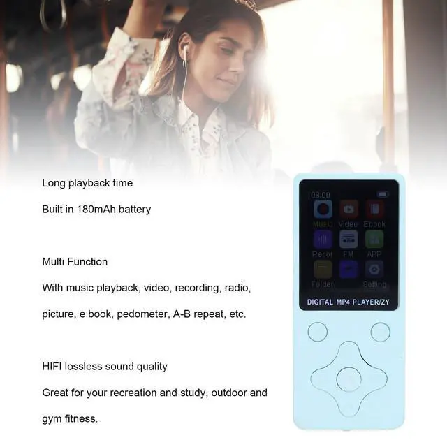 ^^ UPGRADED BLUETOOTH: Adopting advanced Bluetooth 5.0 technology, faster speed, more stable connection, stronger anti interference, better compatibility, lower latency and lower power consumption. You can pair your Bluetooth MP3 player with headphones or Bluetooth speakers and say goodbye to tangled wires. ^^ HIFI LOSSLESS SOUND QUALITY AND SPORTS PARTNER: Adopts professional sound decoding chip and intelligent noise reduction chip to bring you lossless music. With breakpoint replay function, great for sports, workout, running, traveling and so on. Supports MP3 APE FLAC WMA WAV AAC and other music formats (note that it does not directly support audiobooks). ^^ MULTIFUNCTIONAL, LONG