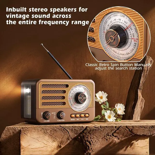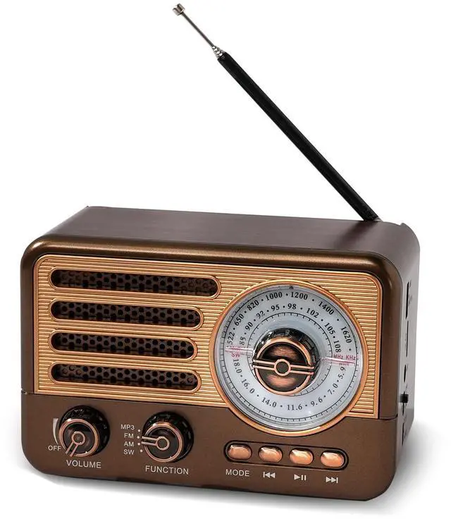 Radio Mode: Turn on the radio and just set the frequency range to FM, AM or SW, now you can rotate the station selection knob to find and enjoy your favorite radio station freely ^^ PERFECT MUSIC PLAYING EXPERIENCE1) Supports flash drive and TF card, which means you can play music from anywhere. i. e. it has an additional MP3 player function. 2) With AUX and Bluetooth function. This even makes the transistor radio easy to use as your phone or computer's stereo speaker. 3) Equipped with a built-in 3W magnetic speaker that reliably delivers deep bass and smooth treble.