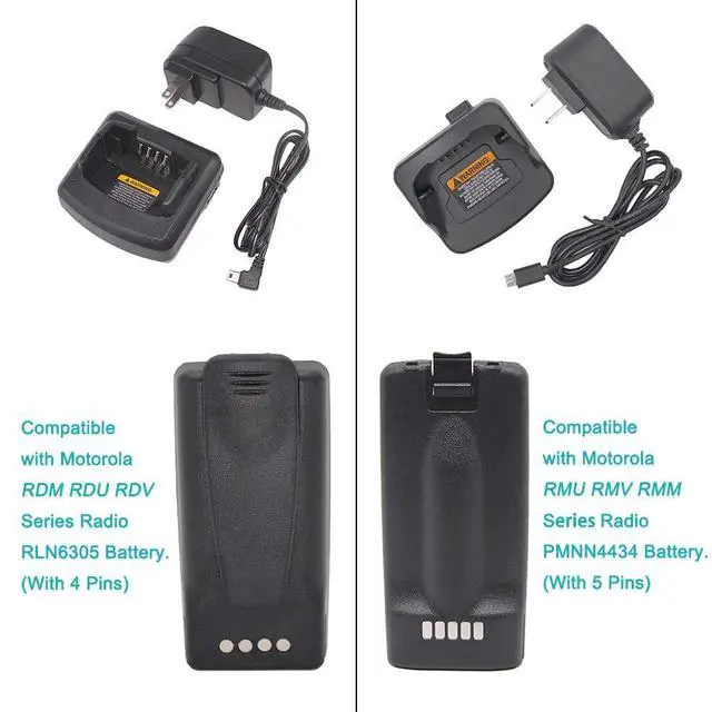 Rapid Charger for RLN6305 RLN6308 RLN6351 and other compatible batteries. ^^ Compatible for Motorola RDM RDU RDV RMM RMV RMU Series Two-Way Radios. ^^ It works with all Ni-CD, Li-ion and Ni-MH Batteries. ^^ You can charge your batteries separately or charge radios with battery installed. ^^ All products are replacement part with our own brand Aimtobest. The mention of other brand name or specific model is solely intended to illustrate compatibility.