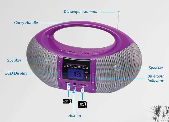 USB port and SD card slot for MP3 playback and Aux-in connection for external audio devices: Play your favourite MP3 music on a USB flash drive and SD Card. Simply plug in via 3.5 mm jack and play your favourite music from your smartphone or tablets with AUX connectivity.