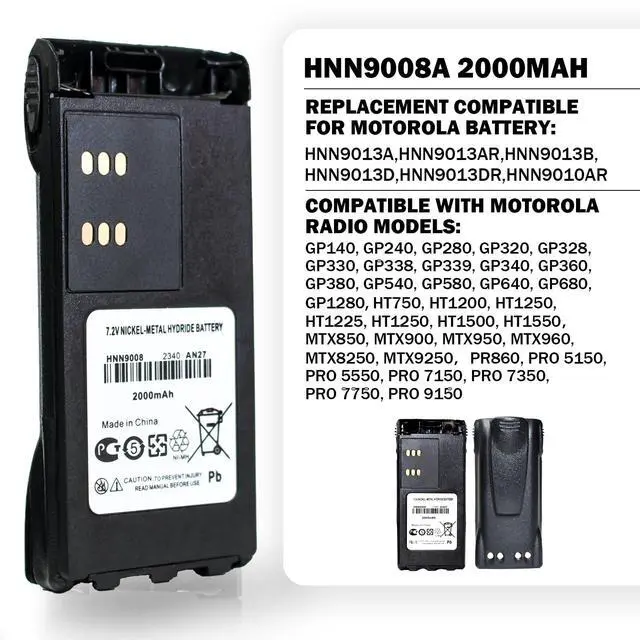 HNN9013A 7.4V 2000mAh Li-ion Two-Way Radios Battery Replacement for Motorola HNN9013, HNN9013A, HNN9013B, HNN9013D, HNN9013DR, HNN9013D_R ^^ Two-Way Radio Battery Compatible with Motorola MTX850, MTX850. LS, MTX900, MTX950, MTX960, MTX9250, MTX8250 MTX8250LS, PR860, PRO5150, PRO5750, PRO7150, PRO7350, PRO7750, PRO9150 Talkabout Radios ^^ Replacement Battery for Motorola Talkabout walkie talkies HT750, HT1225, HT1250, HT1550, GP140, GP320, GP328, GP338, GP340, GP360, GP380, GP640, GP680, GP1280 ^^ Replacement Batteries Safety protection-Safety Ensured, effectively protection Over-charge, over-discharge, over-heat, over-current & short-circuit protection.