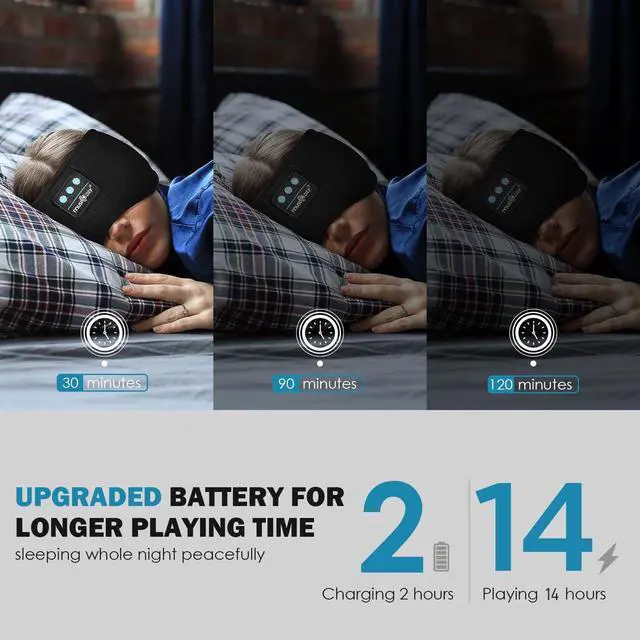 LONG-LASTING BATTERY WITH TIMER FUNCTION: Equipped with an upgraded 240mAh battery, the sleep mask provides over 14 hours of playtime with just 2 hours of charging; includes a timer function that can automatically turn off after 30-120 minutes, conserving battery life as you drift off to sleep ^^