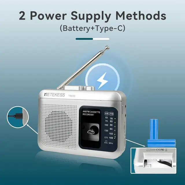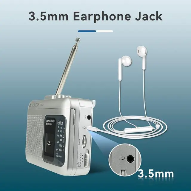 Cassette tape player with AM/FM radio; with multi-mode support; you can easily switch between AM/FM radio and cassette modes; whether you're tuning into your favorite station or enjoying a classic tape; this device offers flexibility for all your listening needs ^^ Easy to operate; there are large control buttons on the top of the portable cassette player; it is easy to play; stop; rewind or fast forward the tape; whether it is old or young; it can be used out of the box ^^ Cassette recorder; built-in microphone; you can record broadcasts and external sound sources onto blank tapes; and you can also use a 3.5 mm audio cable to connect to the PC to record music on the computer; multiple recording options are very flexible ^^ Cassette player has a MIC jack; you can easily connect an external microphone; whether you are recording voice or music creation; or other sounds; you can get clear audio ^^