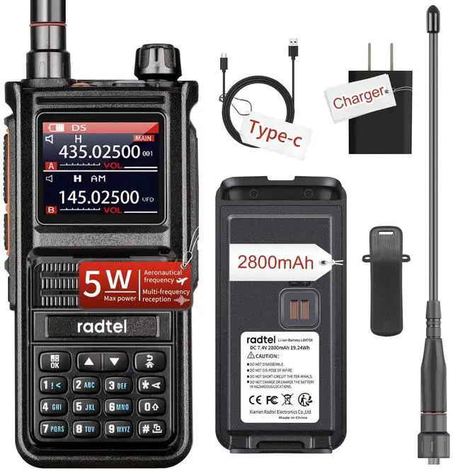 ^^ [Package Contents: ]1x Radtel RT-470X Ham Radio, 1x 2800mAh Type-C Battery, 1x 7.87 -inch Dual Band 145/435 Antenna, 1x 39-inch USB-C Charger Cable, 1x Belt Clip with Metal Piece, 1x English User Manual, 1x AC Power Adapter with USB Port (FCC