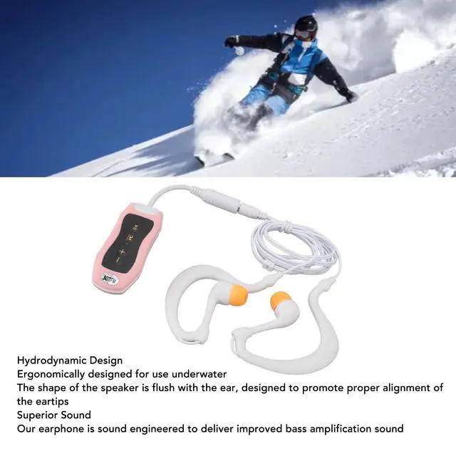 HYDRODYNAMIC DESIGN: Our MP3 music player is ergonomically designed for use in water. The speakers are shaped flush with the ear and are designed to promote proper alignment of the eartips. 5.