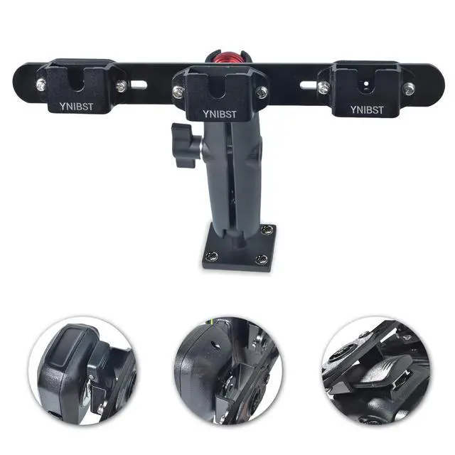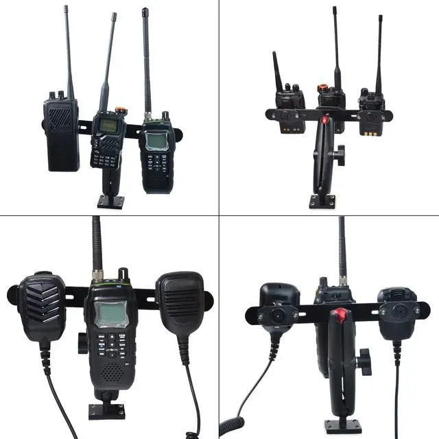 Multi-device holderWith itsmulti-device holderdesign, you can hold three devices such as handheld radio, speaker mic, CB microphone at the same time as long they have a belt clip or round knob on the back. ^^ Stable mountingIt is very stable once installed with included screws and holds your walkie-talkie and microphone firmly. The drill mount base also features adhesive bottom which helps to maximize stability. ^^ Quick InstallationIt only takes a few minutes to install it and you dont need a professional to help with included installation instructions. ^^ Drill mount baseThis walkie talkie holder features a drill mount base with pre-drilled holes, which is great for mounting into a wall, or drilling down to a table, console and dashboard.
