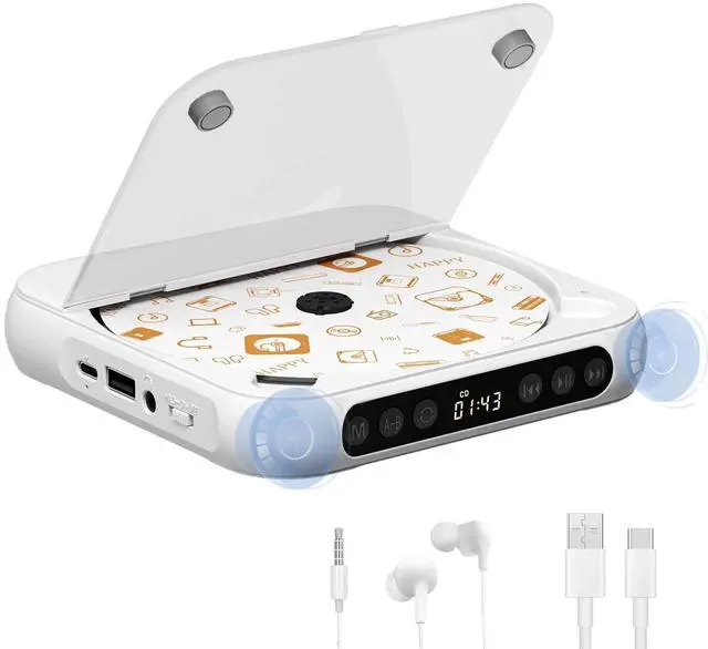 ^^ [Rechargeable CD Player]: This Portable CD Player is built in high capacity battery that can be charged using the included type-c cable. no cable winding, perfect for carrying out. ^^ [CD Player with Speakers]Its integrated high-quality speaker eliminates the need for external equipment, simply insert your CD and press play! Perfect for any room, the compact design blends seamlessly into your home decor while delivering rich, immersive audio.