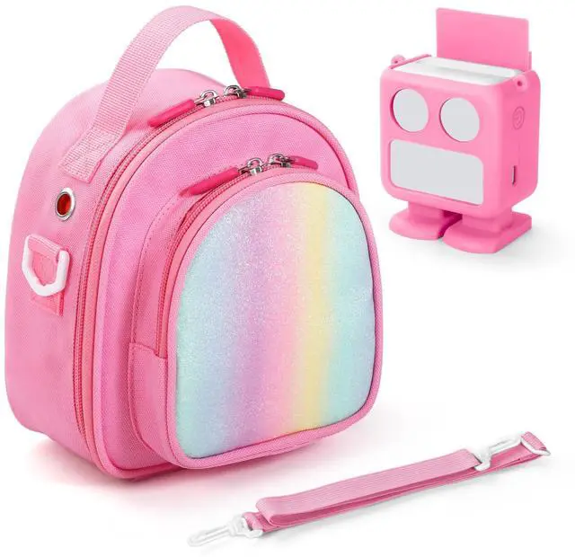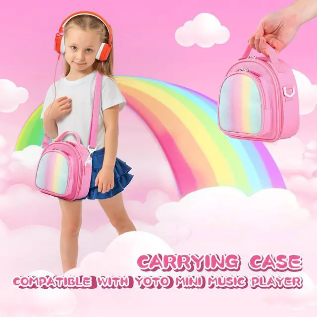Travel Storage Bag and Silicone Carrying Case Cover Compatible with Yoto Mini (2024 Edition) Bluetooth Audio Player and Accessories (Rainbow Pink)