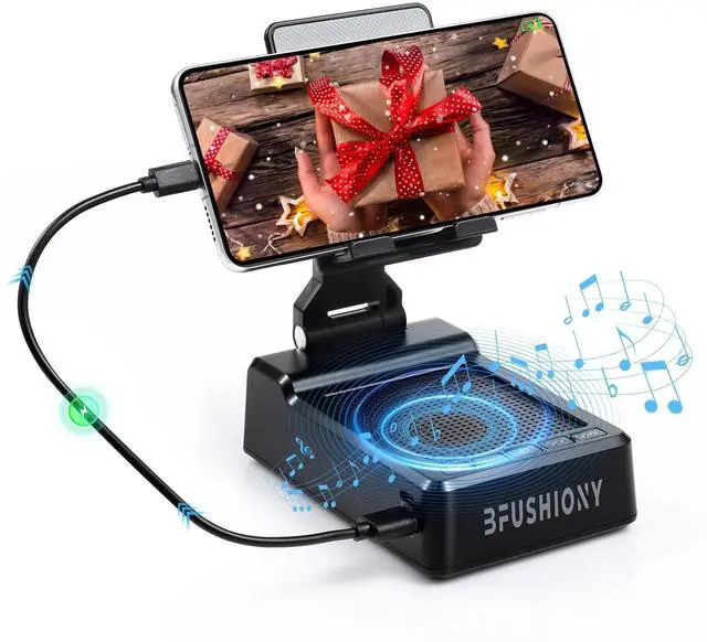 Portable Charger: This cell phone stand with portable bluetooth speakers not only can listen to music and watch videos, you can also charge the phone or tablet. Playing up to 50 hours on a single charge at 50% volume, about 1000 3-min songs ^^ Tech Gifts for