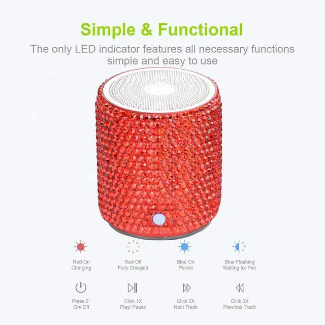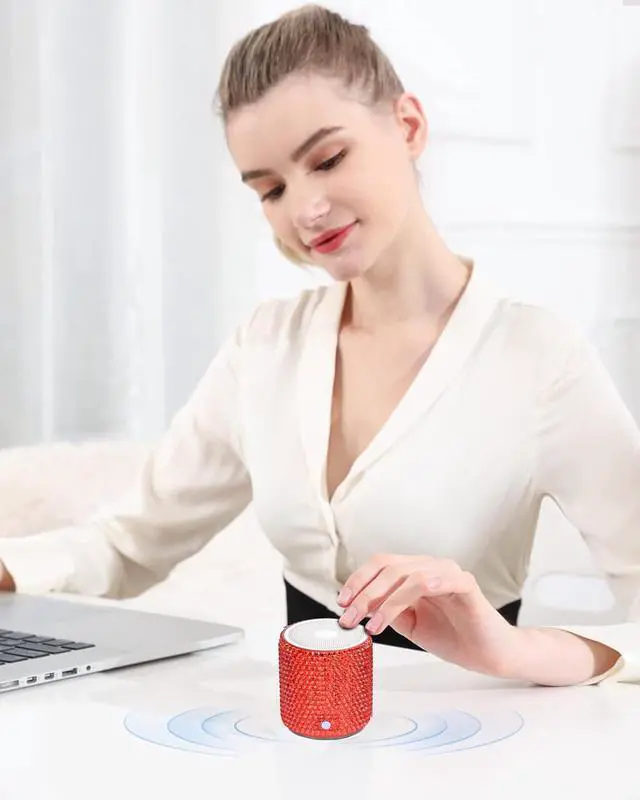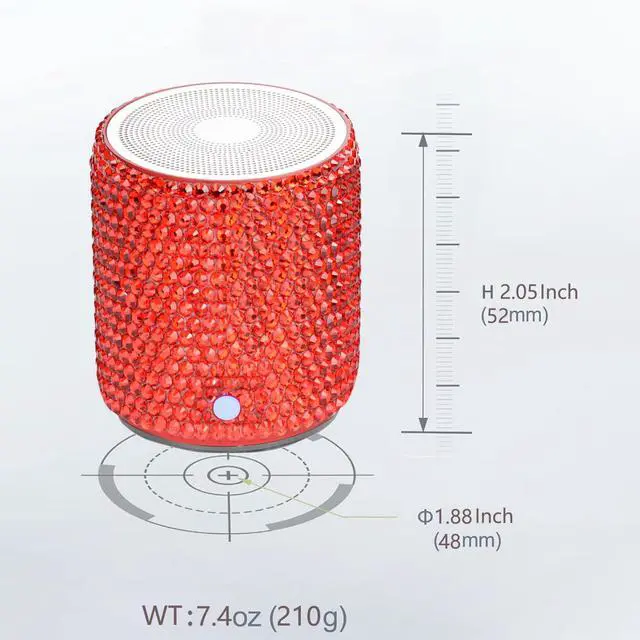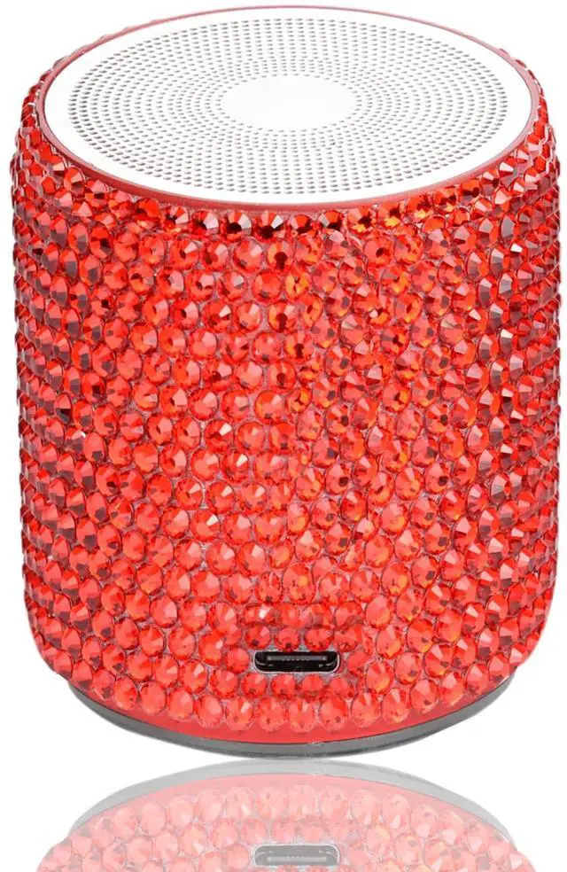 Unique Stunning Design - Hand laid LUXURY AUSTRIAN rhinestone crystals adds sparkle and bling to your space, a bedazzled unique gift. It is not only a high-quality mini wireless speaker, but also a desktop artwork . Also, the various color option and the compact size make it the best choice for home, office or travelling use.