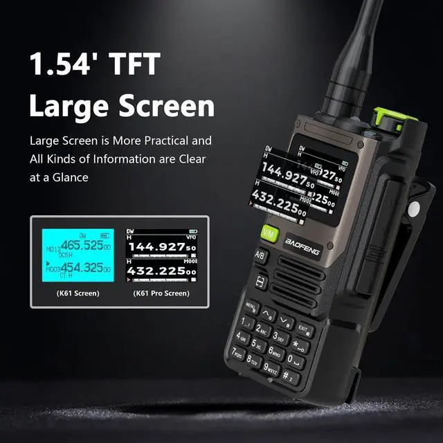 The BAOFENG UV-K61 Pro two-way radio is designed to meet the demands of professional, outdoor, and emergency users. Featuring up to 640 channels, this radio provides reliable communication in any environment, making it perfect for search and rescue teams, event coordinators, and outdoor adventurers. With dual display and dual standby capabilities, you can monitor multiple channels at once, ensuring you never miss important information.
