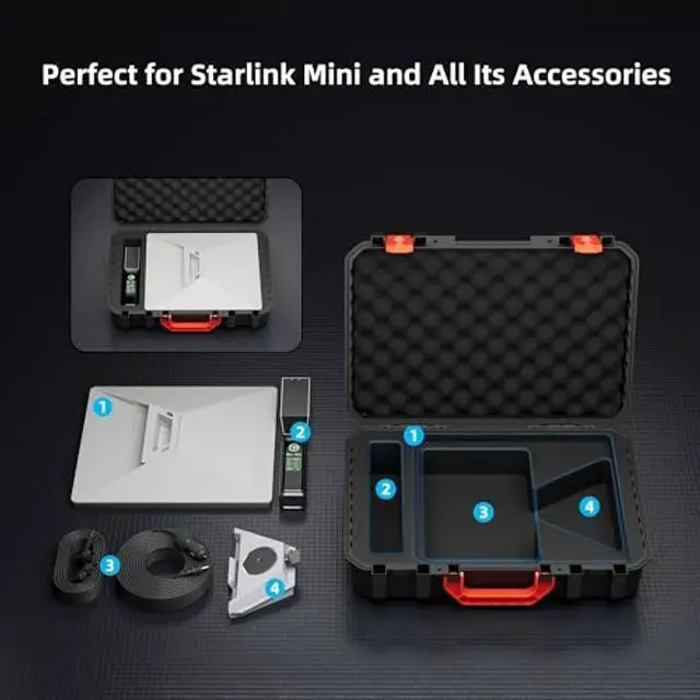 ^^ Customized for Starlink Mini - This durable starlink mini hard case can perfectly hold the starlink mini dish, power supply, DC power cable, kickstand stand, starlink mini pipe adapter and starlink ethernet adapter to keep everything organized and protected.