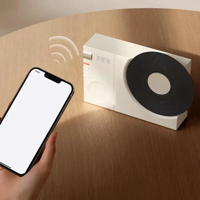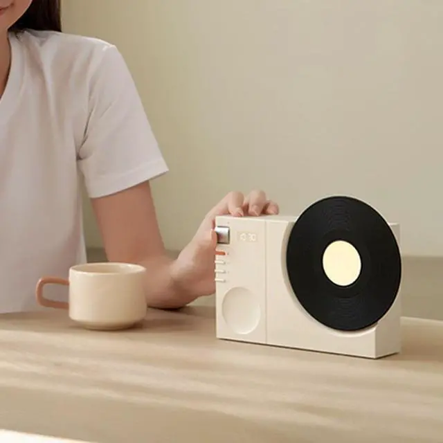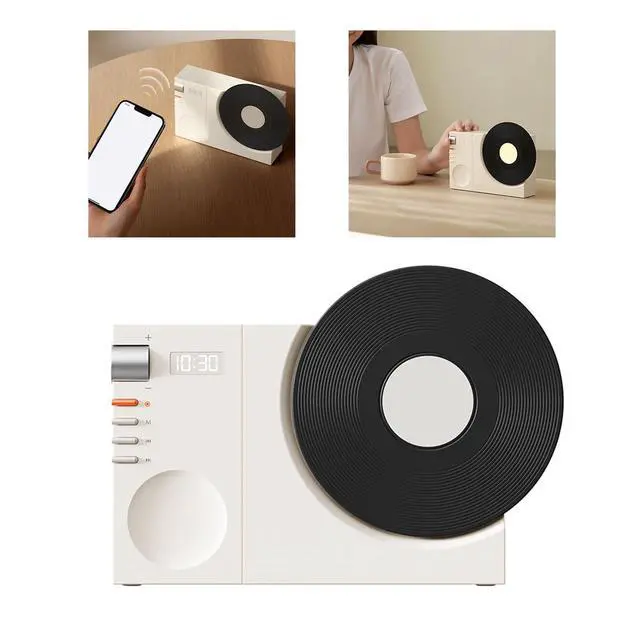 CLASSIC RETRO: Features an analog Vinyls rotary design with an integrated digital clock, creative design and artistic minimalist geometric shape. Let you enjoy digital music while feeling the nostalgic experience it brings. ^^ BT 5.3