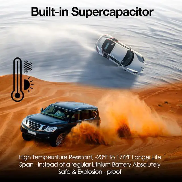 ^^ SUPERCAPACITOR & PARKING MONITOR - The dashcam uses a supercapacitor that can withstand extreme temperatures from -20 to 176F, which prevents the risk of overheating, extends the life span and reliability of the camera. With the parking monitor feature, the dash camera will automatically turn on and record when the car camera detects vibration OR the dashcam will capture frames for a time-lapse video 24/7. Please connect the smart hardwire kit to activate the parking mode. ^^ 170 DEGREE ULTRA WIDE ANGLE LENS & WIDE DYNAMIC RANGE - With its 170-degree ultra-wide-angle lens, you can mount the camera nearly anywhere and still capture the entirety of the road.