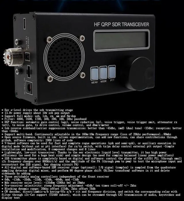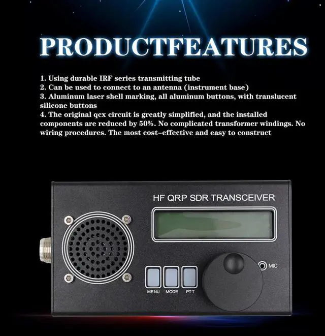 [MULTIPLE MODES] - This SDR shortwave radio transceiver supports USB, LSB, CW,, and FM DSP modes, providing versatile options for your communication needs. ^^ [EXCELLENT ALUMINUM ALLOY MATERIAL] - Made of sturdy and wear-resistant aluminum alloy material, this SDR shortwave radio transceiver ensures durability and a long service life. ^^ [WIDE APPLICATION] - This SDR shortwave radio transceiver has a wide range of applications, including DIY projects, communication, and automotive use. ^^ [CIRCUIT SIMPLIFICATION] - With 50% fewer mounting components and no complex transformer windings, this SDR shortwave radio transceiver simplifies the original qcx circuitry even further.