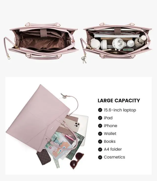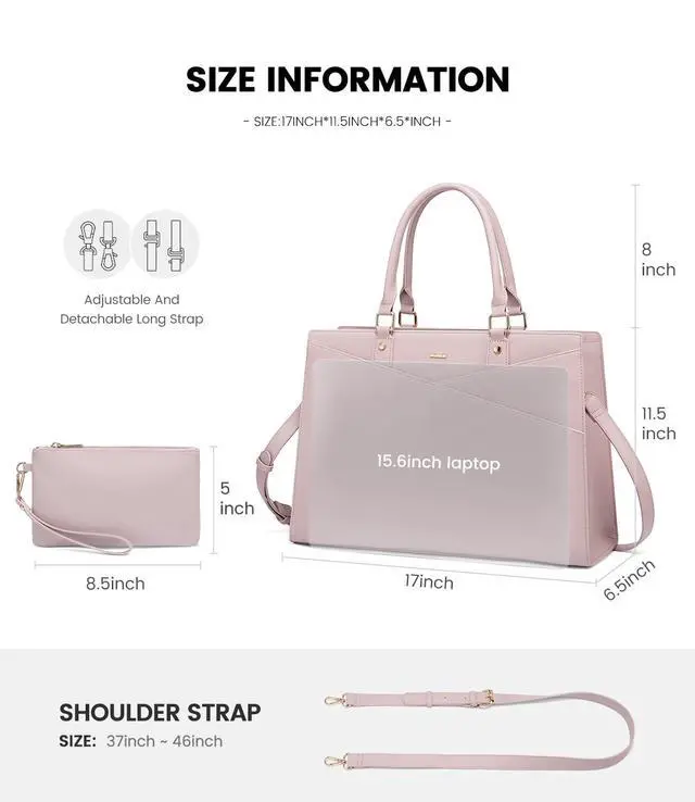 Weight: 2.58 lbs. The distance from the top handle to the tote bag is 8''. The adjustable shoulder strap is 37 to 46 inches long. It is large enough to keep your daily items organized. Its minimalist and chic appearance makes it suitable for both formal and casual occasions. ^^ One Bag Fits all OccasionThe elegant and unique design makes it very suitable for work, office, meeting, business trip, travel, coffee shop and other places as women's briefcase, teacher's handbag purse, computer tote bag or women's messenger bag. Simple color matching are easy to match with various clothing styles. ^^ Good Choice LOVEVOOK attaches great importance to product quality, The tote bag is ideal for personal use or as a fantastic gift for Christmas, Mother's Day, and Valentine's Day.