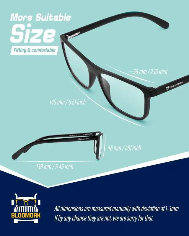 Men & Women: With spring hinge, the black square frame suit for various facial shapes, the classic design looks good on both men and women, young and old. The unibody design spread pressure to the frame evenly, thus you feel like nothing for 12 hours' wearing.