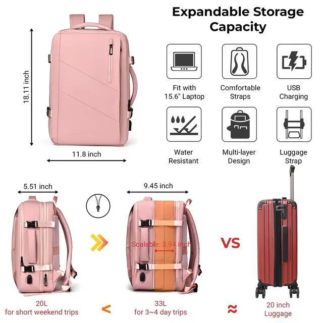 ^^ Expandable capacity: The zippered expansion system increases the main compartment capacity by up to 50%, providing you with extra space to store clothes, souvenirs, or daily necessities, especially when you need it most.