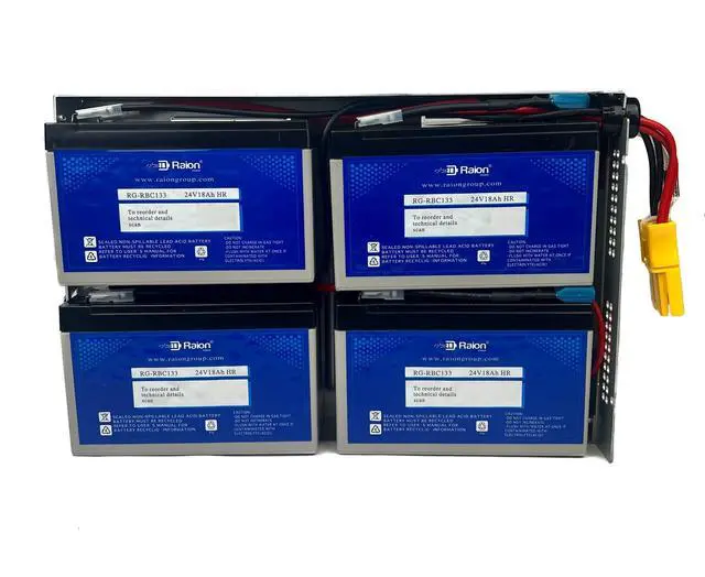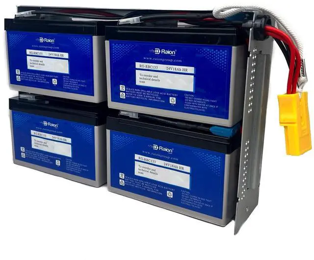 This is Raion Power 24V 18Ah battery is guaranteed to be a compatible replacement to your existing APC RBC133 & APC RBC159 battery kit. ^^ Brand new Raion Power RG129-36HR (12V 9Ah 36W) high rate discharge batteries are used to assemble this kit. ^^ Raion Power RG129-36HR battery cells are U. L. Listed and are specifically designed for uninterruptible power supply units. ^^ The battery cells are top charged and voltage matched to improve performance and lifespan of the battery ^^ This battery is compatible with the following