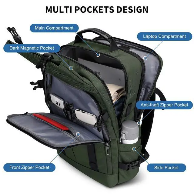 Capacity and Space: The spacious main zipper pocket can hold travel accessories, clothes, etc, making your items neat, orderly, and easy to find. The travel backpack is large enough for vacation, weekend getaway, overnight trip.