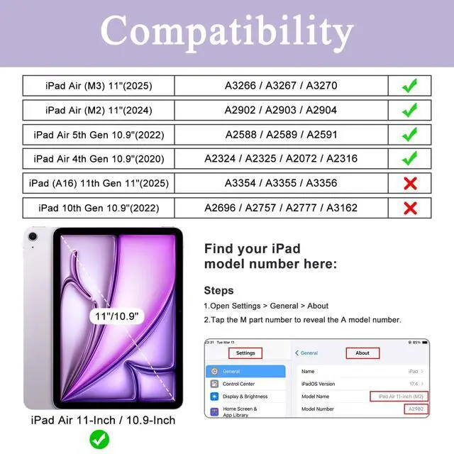 Compatibility Exclusively designed for iPad Air 11-inch (M3) 2025(Model