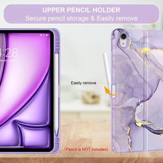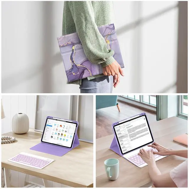 (Tips: Pencil is NOT included) ^^ Anti-Slip Groove The keyboard case compatible with Air 11 & iPad Air 5th/4th is lined with 2 non-slip grooves that support the iPad to stand at two different viewing angles: 120 and 130. You can change the angle of the iPad according to your work, movie watching, or typing needs ^^ Auto Sleep/Wake The built-in magnets of keyboard cover for iPad Air support with automatically sleep and wake function to protect and save the battery life, and prolonging the time you use your iPad ^^ You Will Get 1 x Case for iPad Air 11 inch (M3/M2) & Air 5th/4th Generation, 1 x Bluetooth keyboard, 1x Type-C charging cable, 1 x user guide.