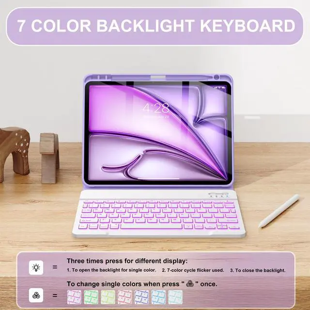 Number: A2316/A2324/A2325/A2072). Not fit any other iPad models ^^ 7-Color Baclit Detachable Keyboard The keyboard for iPad Air 11 inch has 7 backlight colors to change, allowing you to switch to your favorite light color at any time. Magnetic detachable design makes it easier for you to use the keyboard ^^ Rechargeable Battery With a large battery capacity for long time use. Keyboard will be fully charged around 3-4 hours for the iPad Air 11/Air 5/Air 4.