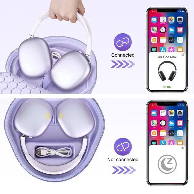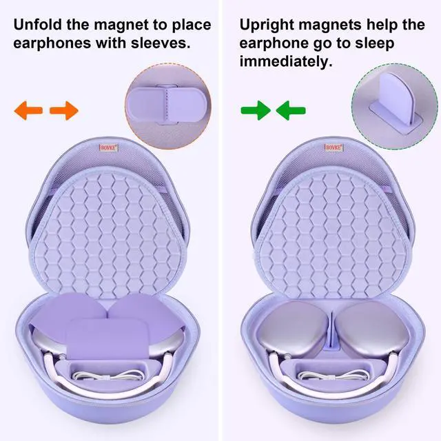 ^^ Sleep Mood: This airpods max case has the magnetic device on the bottom, alllows your AirPods Max into sleep mode in ultra-low-power state, The Bluetooth can be automatically disconnected when you put your AirPods Max in this carrying case and connected immediately when you take AirPods Max out, convenient for daily use. ^^ This Apple AirPods Max headphone case has a special groove and extra mesh pocket to store the charging cable, Apple charger and other Airpods Max accessories, the AirPods Max Headphone can be placed in this protective case alone or used with the Apple headphone orignal smart case. ^^ This airpods max case cover is made of hard EVA material and Soft velvet lining, protects your apple headphone from accidental impact of bumps and drops, waterproof, shockproof and anti-scratch. this Apple airpods max cover is designed with a middle padded soft divider, provides high level of protection, ensures a long-lasting performance for your Apple Over-Ear wireless headphones. ^^ This Apple airpods max case comes with Smooth dual zippers, assure a safe and easy access to your Airpods Max headphone. This AirPods Max headphone holder also has a comfortable hand strap, so that the AirPods Max Headphone can travel with you easily, you can carry it in your hands, in a backpack or in a suitcase.
