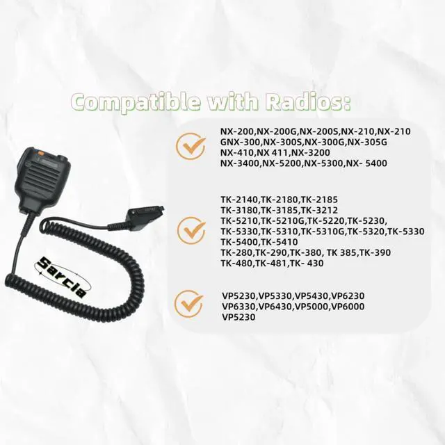 Kenwood Nexedge radios: NX5200, NX5300, NX5400, NX300, NX3200, NX3300, TK390, TK-2180, TK3180, TK380, TK5320 and more. Works seamlessly with NX-200, NX-210, NX-300G, NX-5300 K2, NX-5200 K2, and VP5000/VP6000 series radios ^^ Engineered with a fray-resistant Kevlar/TPU cable, kenwood p25 radio mic stands up to tough use. A rotating stainless steel clip ensures a secure 360 degree attachment to any device ^^