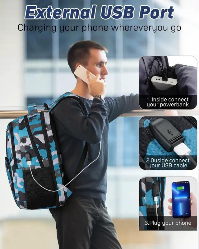 ^^ USB PORT&HEADPHONE HOLE: With built in USB charger and headphone hole design, this school computer backpack offers you a more convenient way to charge your phone and enjoy the music while walking. As a school backpack for men and women, high school college bookbag, computer knapsack.