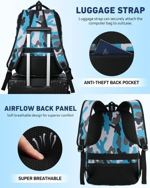^^ FUNCTIONAL&SAFE: A luggage strap allows backpack fit on luggage/suitcase, slide over the luggage upright handle tube for easier carrying. With a hidden anti theft pocket on the back protect your valuable items from thieves. making your journey and travelling more convenient wherever you go.