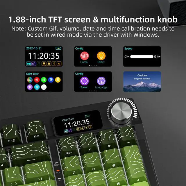 Powerful small-screen features: customizable gif images, date, connection mode, WIN/MAC layout, battery status, and more. ^^ 16.8 million colors of