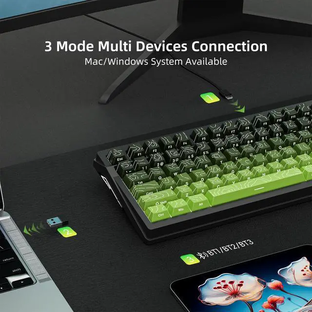 Three-mode connection: support Bluetooth 5.0, 2.4GH z wireless and USB wired connection, compatible with PC, laptop, tablet, cell phone, game consoles (such as PS, XBOX) and other devices.