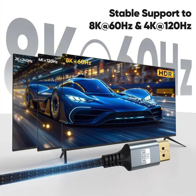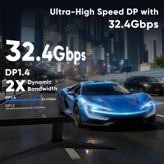 32.4 Gbps Ultra-HD Bandwidth 32.4G bps Ultra High-Speed DP Cable supports native 8K@60Hz / 4K@120Hz / 2K@240Hz resolutions, DP and DP++ modes, and is backward compatible with DP 1.3 / 1.2 / 1.1 / 1.0 standards, ensuring stable high-speed audio and video transmission ^^ High-quality designOur 3ft DP cable is built with a nylon-braided jacket, 24K gold-plated connectors, and a durable, bend-resistant design. It provides reliable signal transmission, withstands daily plugging and bending, and ensures a longer lifespan ^^ No Flicker ExperienceThe DisplayPort 1.4 cable transmits high-definition video and audio from your computer to your monitor.