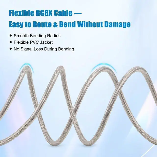 Low-Loss RG8X Coax Cable Built with a pure copper conductor and double shielding (braid + foil), this CB coax cable ensures strong signal transmission and minimal signal loss for high-performance RF applications. ^^ Durable Nickel-Plated Connectors Features corrosion-resistant UHF PL-259 and FME connectors for a secure, long-lasting fit, ideal for both indoor and outdoor environments. ^^ Versatile Connection Options Comes with an FME Female to PL-259 Male cable and an additional FME Male to PL-259 Male adapter, offering multiple configurations for your antenna or radio setup. ^^ Flexible & Ready to Use The soft PVC outer jacket makes installation easy, even in tight spaces.
