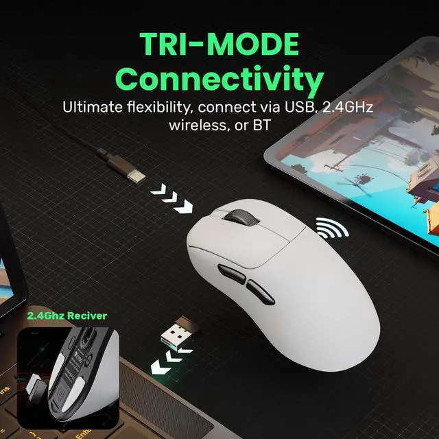 Wireless Freedom: Tri-mode connectivity offers Wired, Wireless 2.4G, or BT 5.0 for seamless gaming on your terms.
