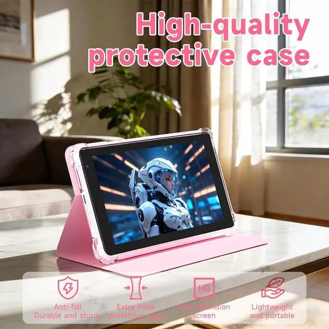 NOVOJOY 7 Inch Tablet with Case, Android 15 Tablet PC, 32GB Storage 8GB RAM Tabletsa Quad-Core Processor Android Tableta pc Dual Camera, WiFi, BT Computer Tabletas.(with Tablets Cover),Pink